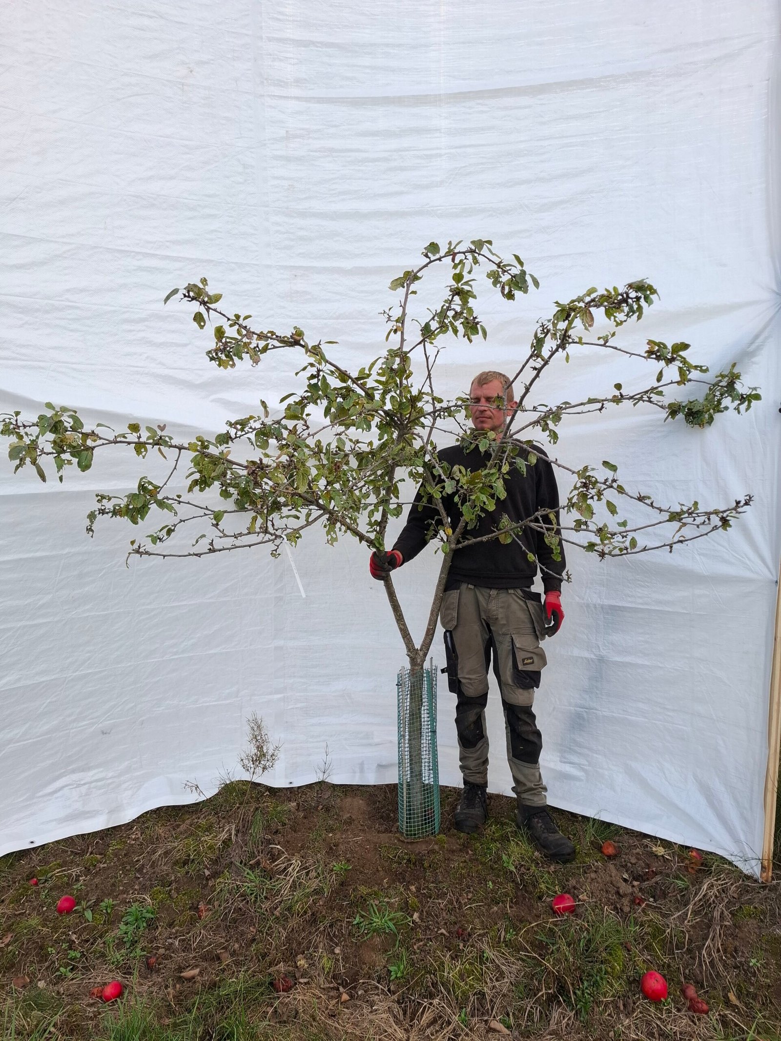 Træerne giver allerede masser af æbler og står med smukke, velproportionerede kroner. De er dyrket på friland ved Vejle med god plads og står i 50 liters root control bags, som sikrer et stærkt og sundt rodnet – altafgørende for træets vækst og etablering.