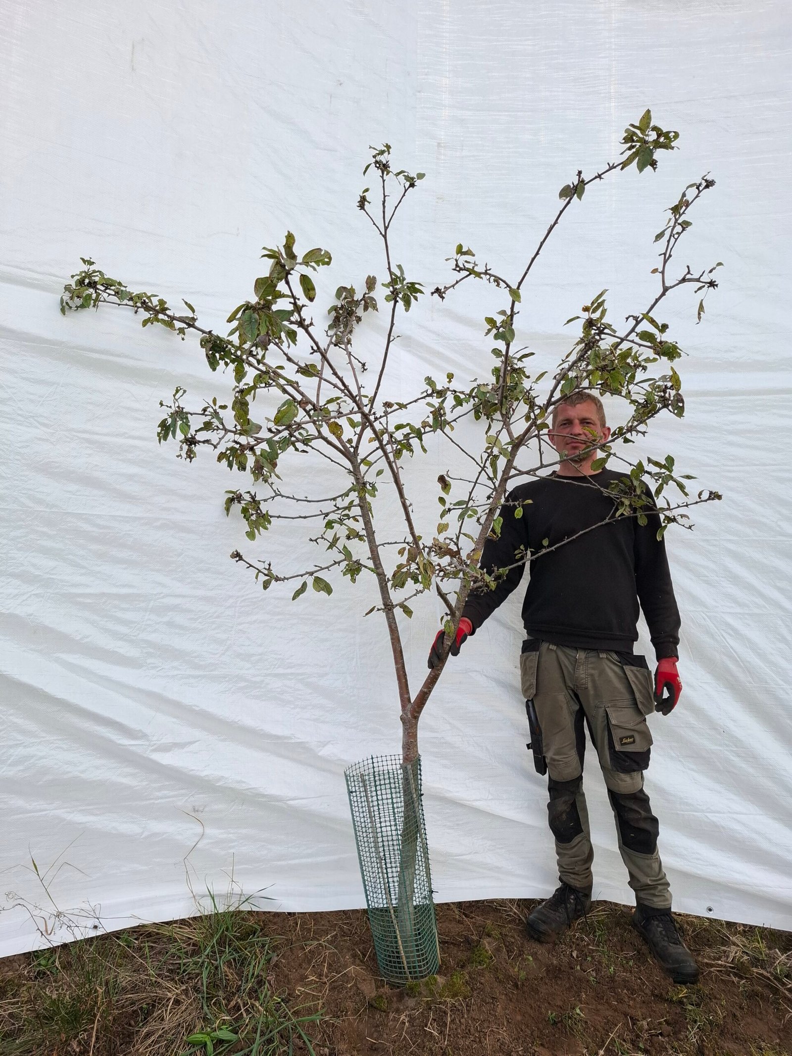 Træerne giver allerede masser af æbler og står med smukke, velproportionerede kroner. De er dyrket på friland ved Vejle med god plads og står i 50 liters root control bags, som sikrer et stærkt og sundt rodnet – altafgørende for træets vækst og etablering.
