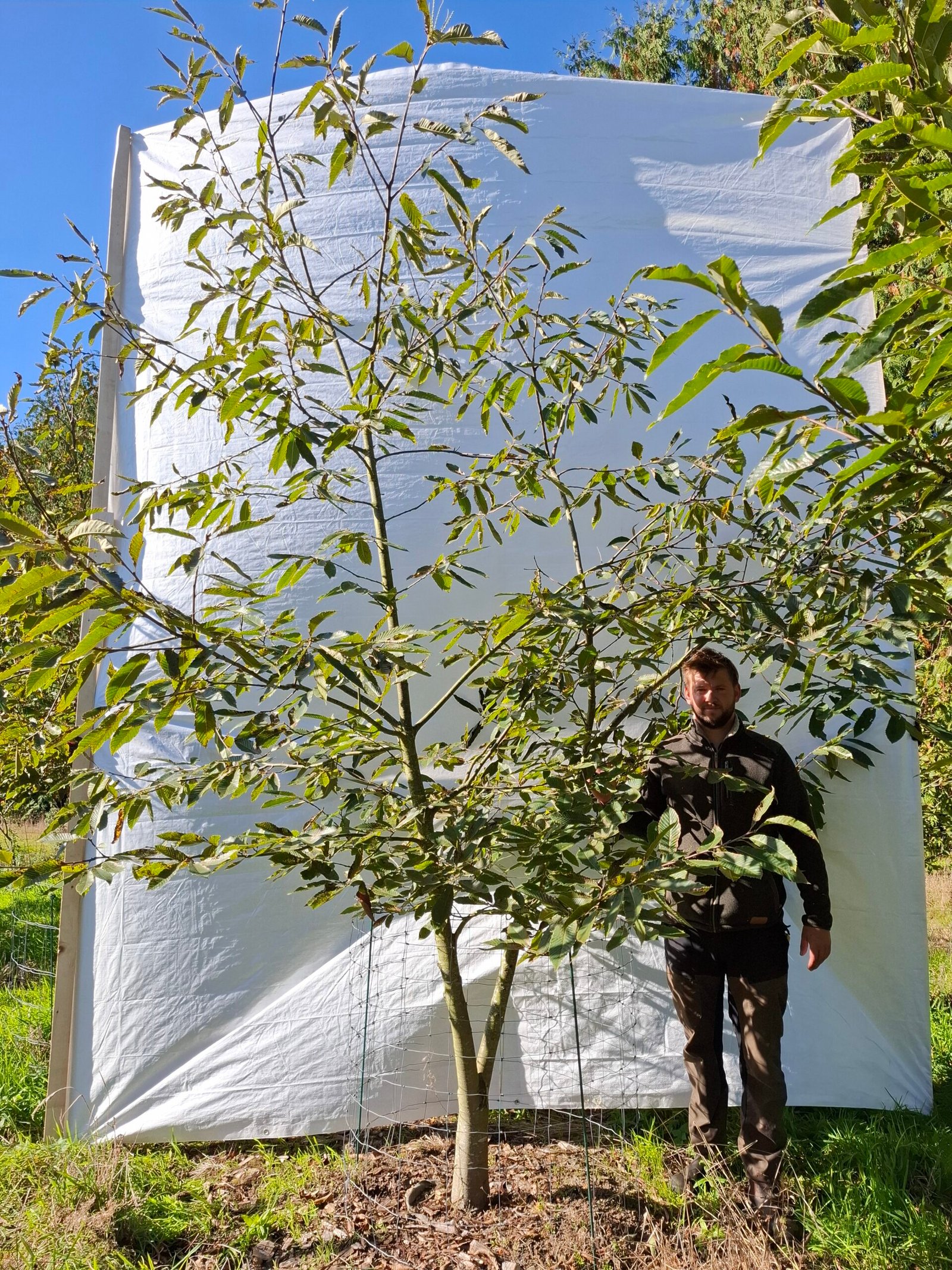 Normalt tager det 8–10 år, før en kastanje bærer frugt, men vores træer giver allerede masser af kastanjer. Det gør dem til et oplagt valg for dig, der ønsker et frugtbart og dekorativt træ i haven fra første dag.