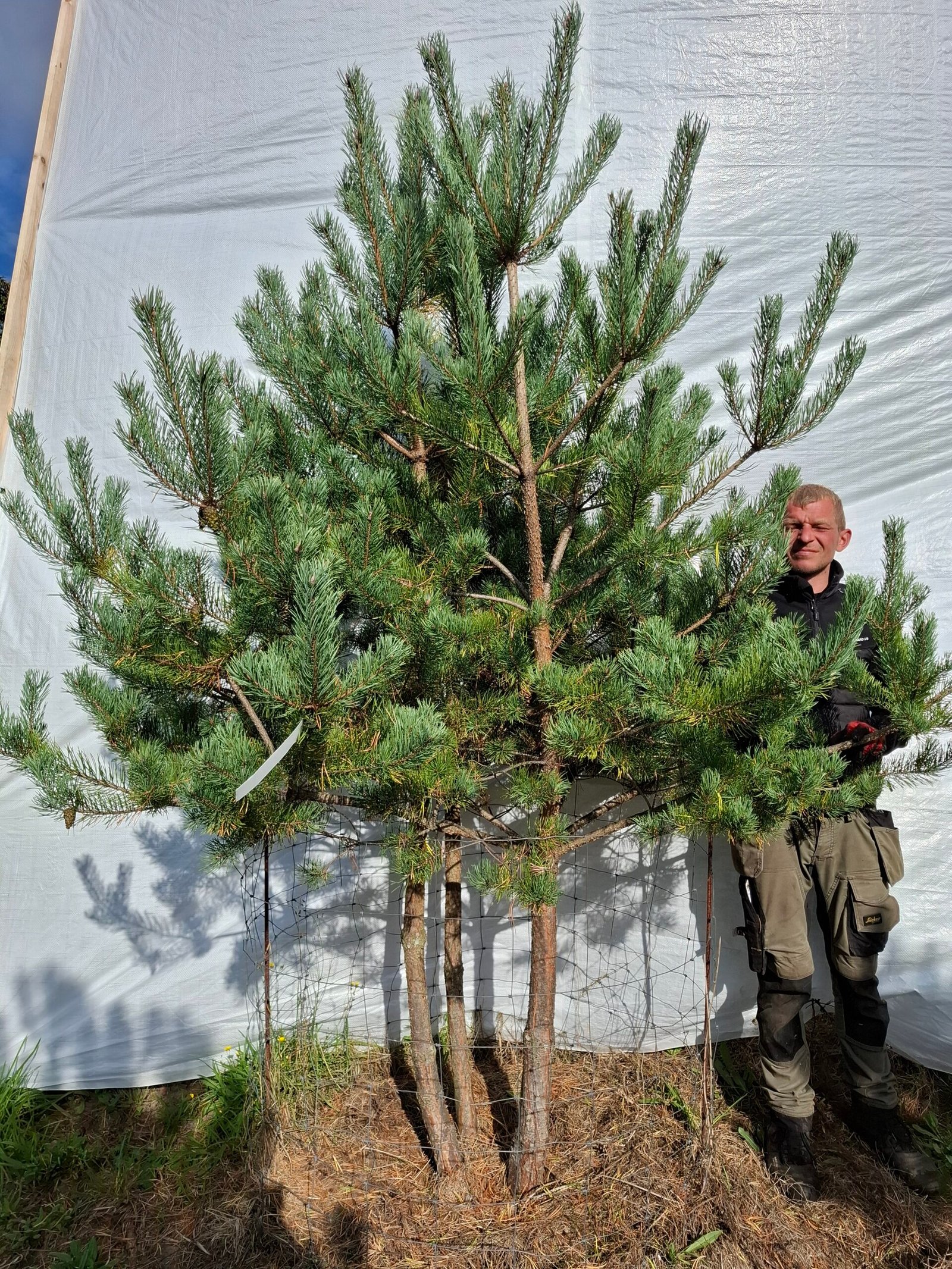Flerstammet skovfyr er et af Danmarks hjemmehørende nåletræer og kendes for sit lette, nordiske udtryk. De flerstammede træer har to eller flere stammer fra bunden og danner brede, dekorative kroner. Det giver en skulpturel karakter og kan fungere som et smukt skulpturelt træ i haven eller som en naturlig, svævende hæk, der skaber afskærmning i højden uden at virke tung.