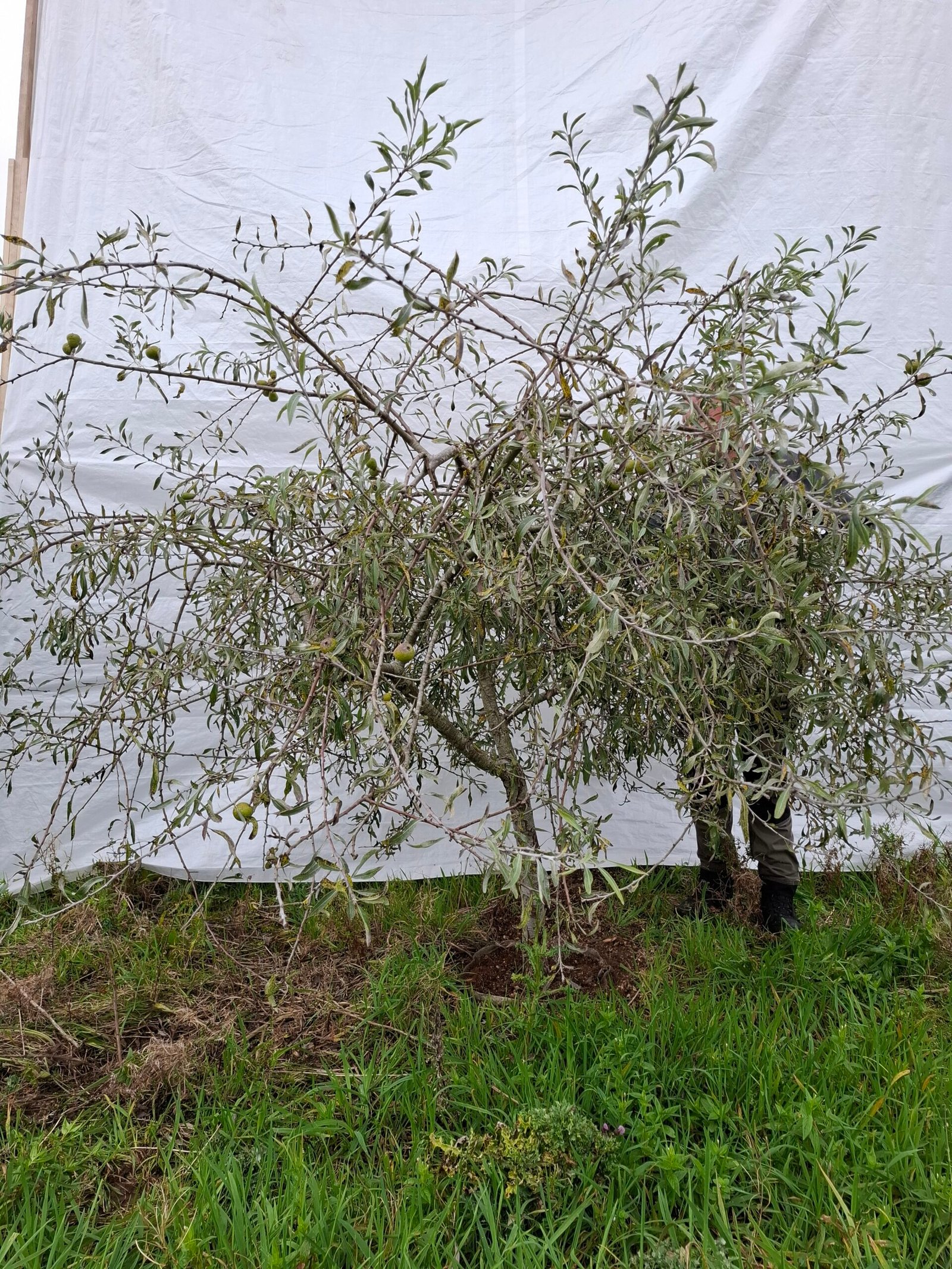 I april–maj blomstrer træet med små hvide blomster, og senere dannes små pæreformede frugter, der kan minde om oliven. Frugterne har dog ingen kulinarisk værdi, men er en charmerende detalje, som understøtter træets særlige udtryk.