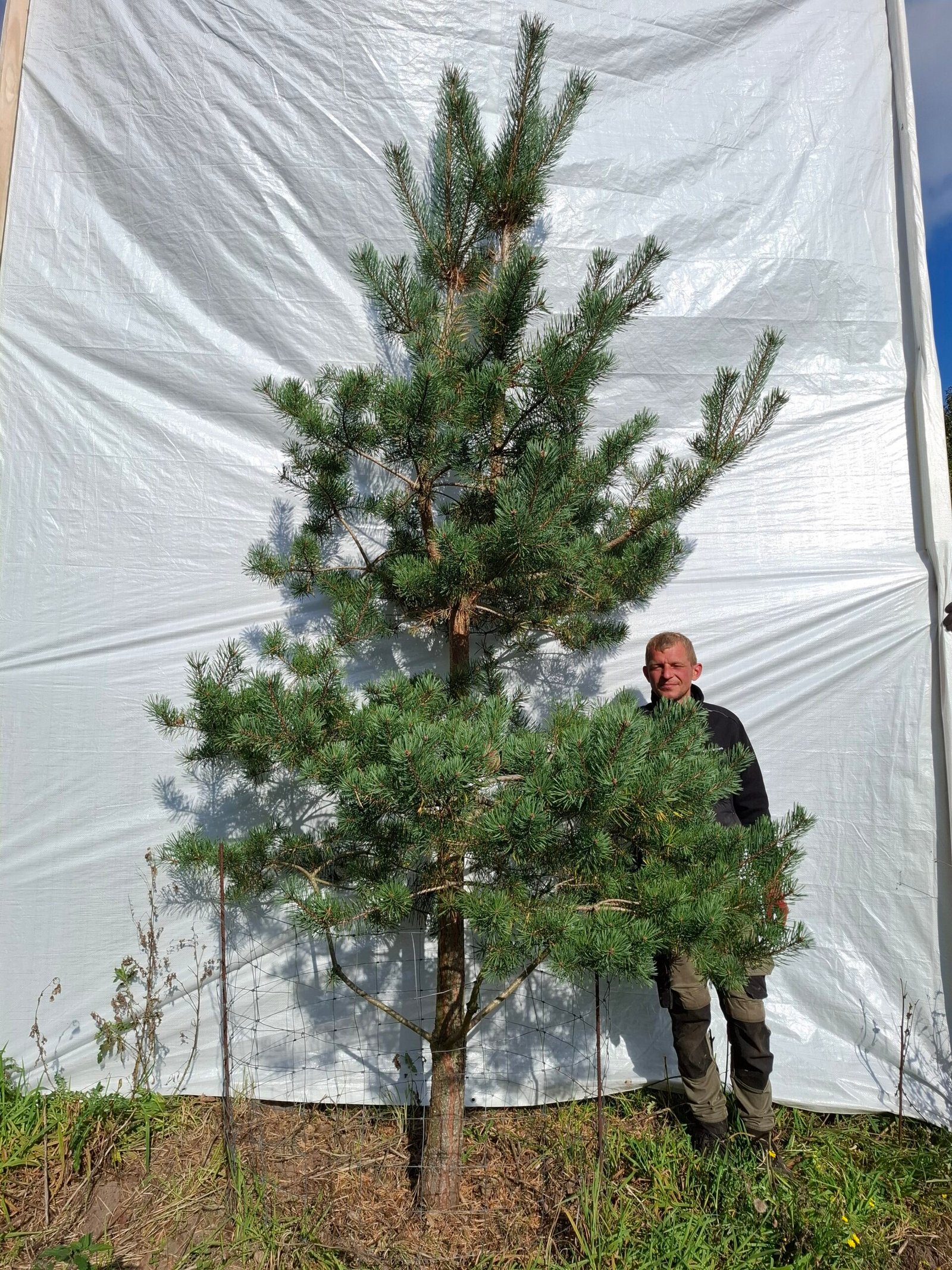 Alle vores skovfyr er dyrket på god plads ved Vejle i 50 liters growbags. Det giver et sundt og kompakt rodnet, som er altafgørende for træets vækst og sundhed – og gør træerne robuste og nemme at etablere i haven.