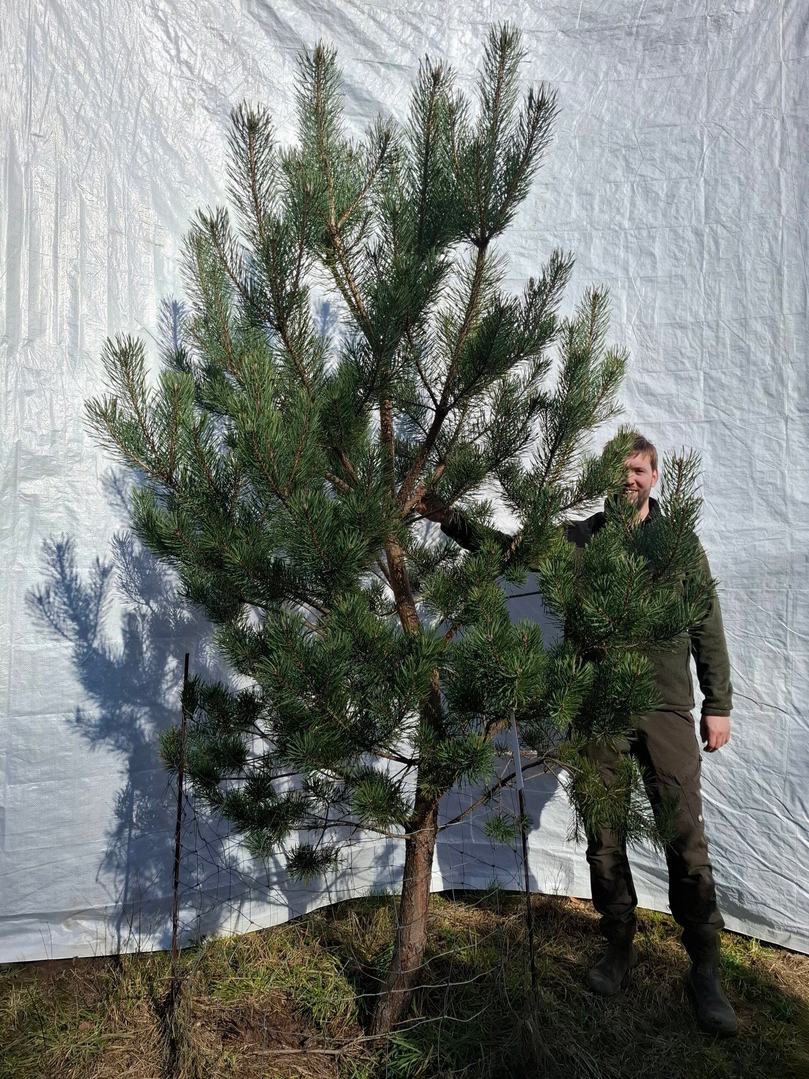 Alle vores skovfyr er dyrket på god plads ved Vejle i 50 liters growbags. Det giver et sundt og kompakt rodnet, som er altafgørende for træets vækst og sundhed – og gør træerne robuste og nemme at etablere i haven.